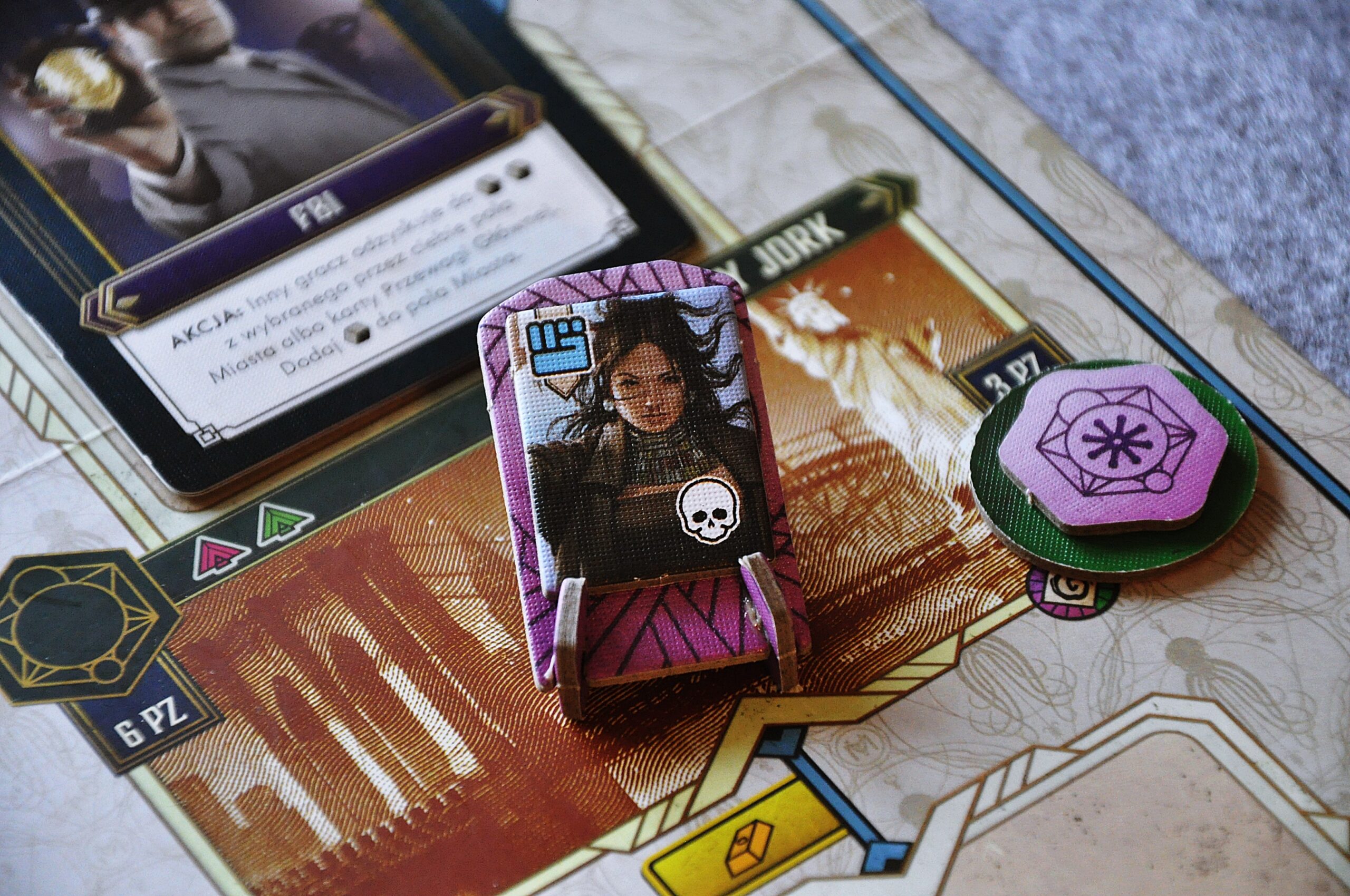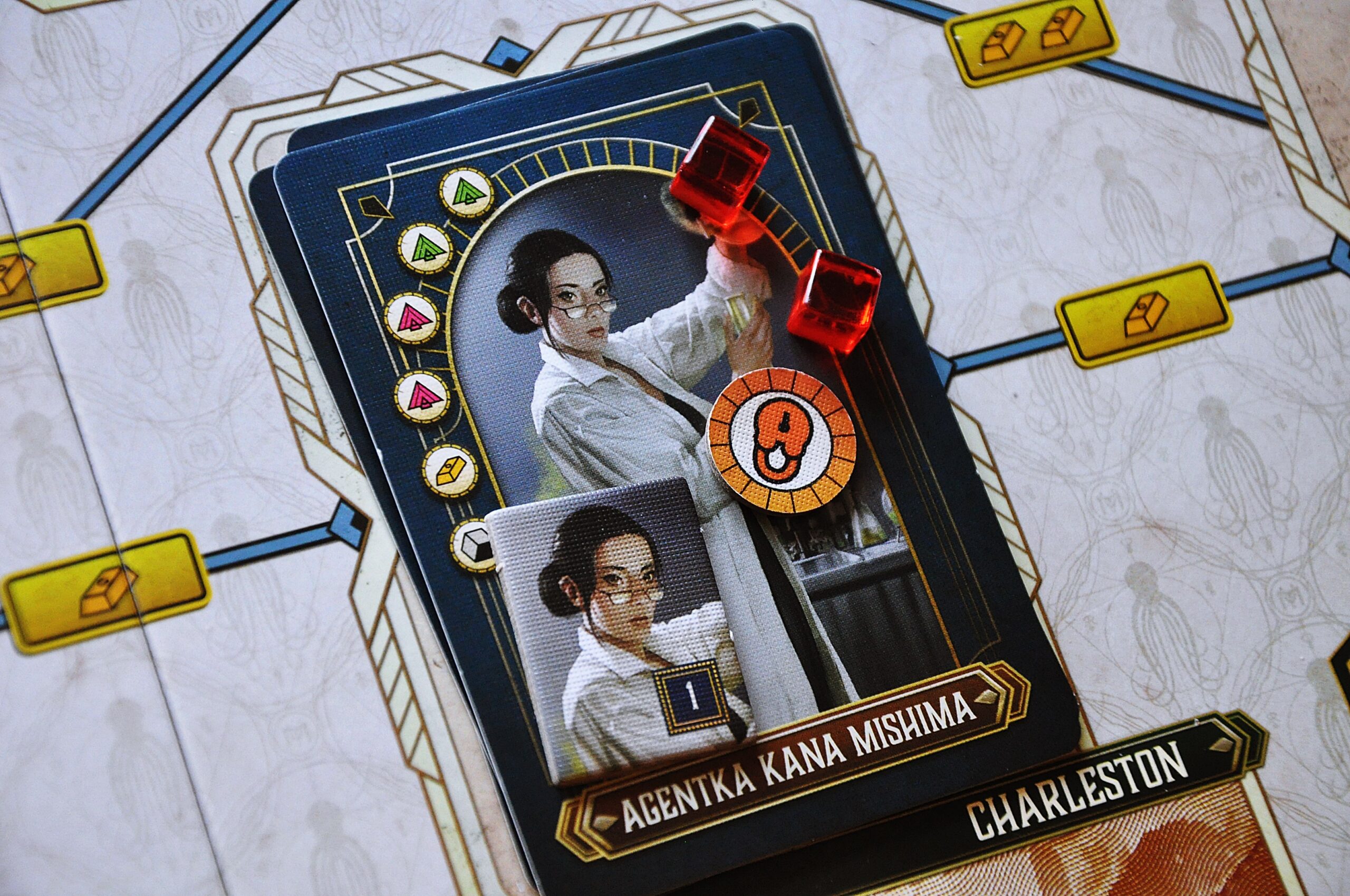 Największe rozczarowanie budzą jednak kartonowe stojaki na żetony agentów. Choć pomysł wydaje się oryginalny, jego wykonanie wypada słabo. Bez użycia kleju elementy rozjeżdżają się kiedy pakujemy je do pudełka, a nawet w trakcie samej rozgrywki. To frustrujące i zupełnie niepraktyczne rozwiązanie, które z powodzeniem można by było zastąpić czymś prostszym i bardziej trwałym – najlepiej bez konieczności powtarzania zajęć z techniki.