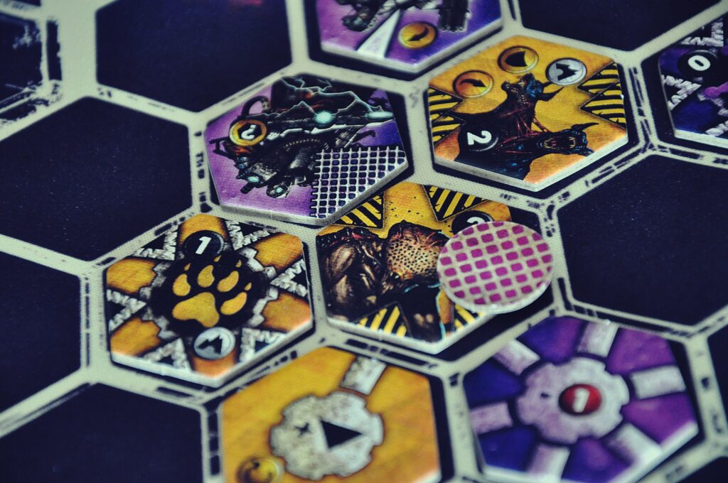 Zasady gry są bardzo proste, za to liczba taktycznych posunięć czy zagrań na pewno Was zaskoczy. Każdy z graczy dysponuje sztabem posiadającym 20 pkt. życia. Naszym celem będzie zniszczenie sztabu przeciwnika lub zbicie jego żywotności do niższej wartości, niż nasza na koniec rozgrywki. Po kolei wykładamy do 3 żetonów z naszych potasowanych stosów. Zasady pozwalają nam zagrać lub zachować na później 2 z nich, trzeci musi być zawsze odrzucony. Wśród żetonów znajdziemy wojowników, których będziemy umieszczać na planszy. Posiadają oni unikalne właściwości, które nie raz zmienią układ sił na arenie. Drugi typ żetonów to moduły, które także trafiają na pole bitwy, są jednak tylko wzmocnieniem dla naszych oddziałów. Trzeci rodzaj kafelków stanowią działania natychmiastowe, które odpalają się w momencie ich użycia i wywołują jednorazowe działanie. Najistotniejszym z tych ostatnich jest żeton bitwy, który powoduje przeprowadzenie ataku przez wszystkich wojowników na planszy w odpowiednich segmentach inicjatywy. Kiedy skończą nam się kafelki również następuje finałowa bitwa, która rozstrzygnie o losach danego pojedynku.