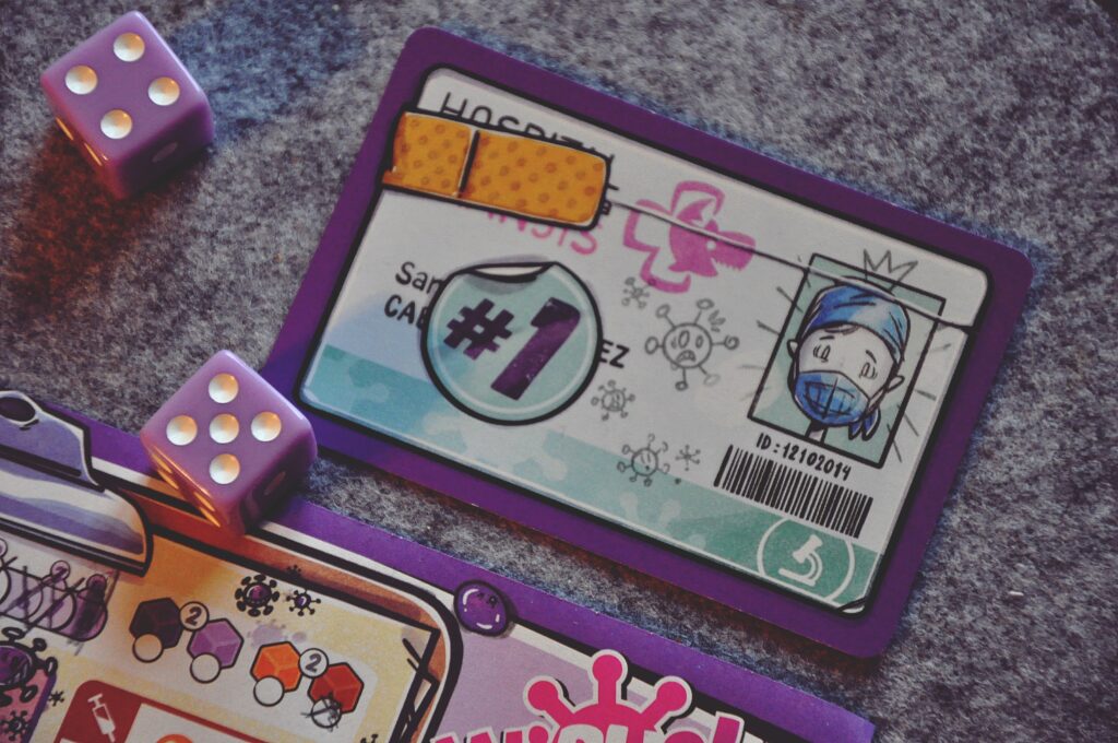 Drugą opcją jest położenie kości na karcie laboratorium. Te mają konkretne wymagania, które warunkują to jakie kości mogą się na nich znaleźć. W momencie gdy wszystkie pola na kartach laboratorium są zajęte, gracze którzy się tam dołożyli zamazują jeden z bonusów jakie wyszczególniono na arkuszu. Może to być pozyskanie jokera na przyszłą turę lub darmowe zamazanie dowolnego pola w sekcji chorób. Jeśli nie możemy położyć nigdzie naszej kości lub nie chcemy, musi ona trafić na kartę skażonych próbek. Gracze na koniec rundy zyskują tyle ujemnych punktów ile oczek ma kostka w ich kolorze na tej karcie.